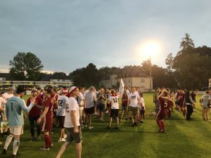 Nun war es soweit! Der FC Perach und der SV Oberbergkirchen trafen am heutigen Mittwochabend am Wasserschloss, der Heimstätte des FC Töging aufeinander. In der „Wasserschlacht am Wasserschloss“ konnte unsere 1. Mannschaft durch den 1:0-Treffer von Manuel Stoiber (31. Minute) als Sieger vom Platz gehen. Vor ca. 700 Zuschauern machte der SV Oberbergkirchen somit den Verbleib in der Kreisliga perfekt.