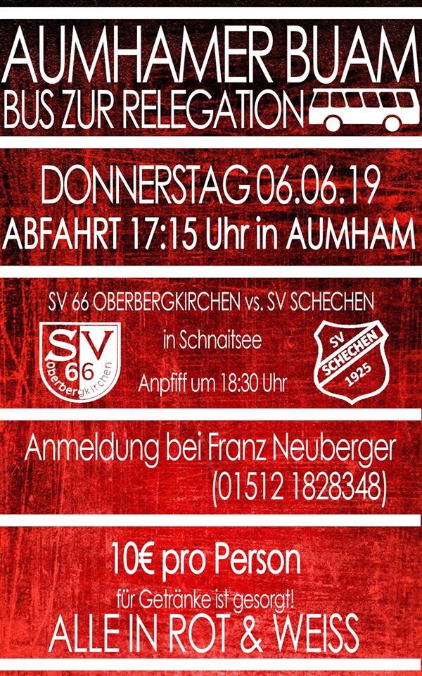 Zum Relegationsspiele am Donnerstag, 06. Juni 2019 gegen den SV Schechen wird von Oberbergkirchen aus ein Bus eingesetzt.