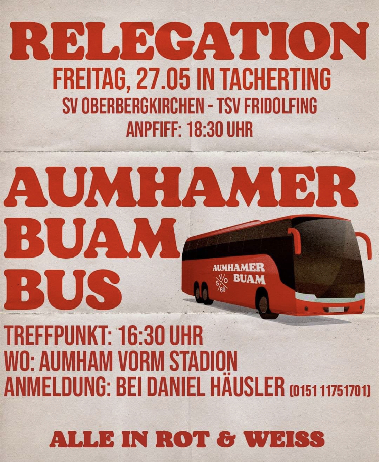 Zum Relegationsspiel des SV Oberbergkirchen gegen den TSV Friedolfing setzten die Aumhamer Buam einen Bus nach Tacherting ein.
