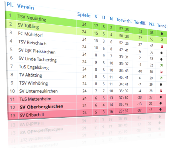 Vor kurzem hat der Bayerische Fußball Verband die Einteilungen der Ligen für die kommende Spielzeit bekannt gegeben. Die zweite Mannschaft spielt weiterhin in der B-Klasse 4 mit folgenden Mitstreitern: TSV Polling, SV Hirten, TSV Neumarkt St. Veit 2, SG Tüßling-Teising 2, TSV Reischach 2, TV Altötting 2, SV Unterneukirchen 2, SVG Burgkirchen 2, TuS Mettenheim…